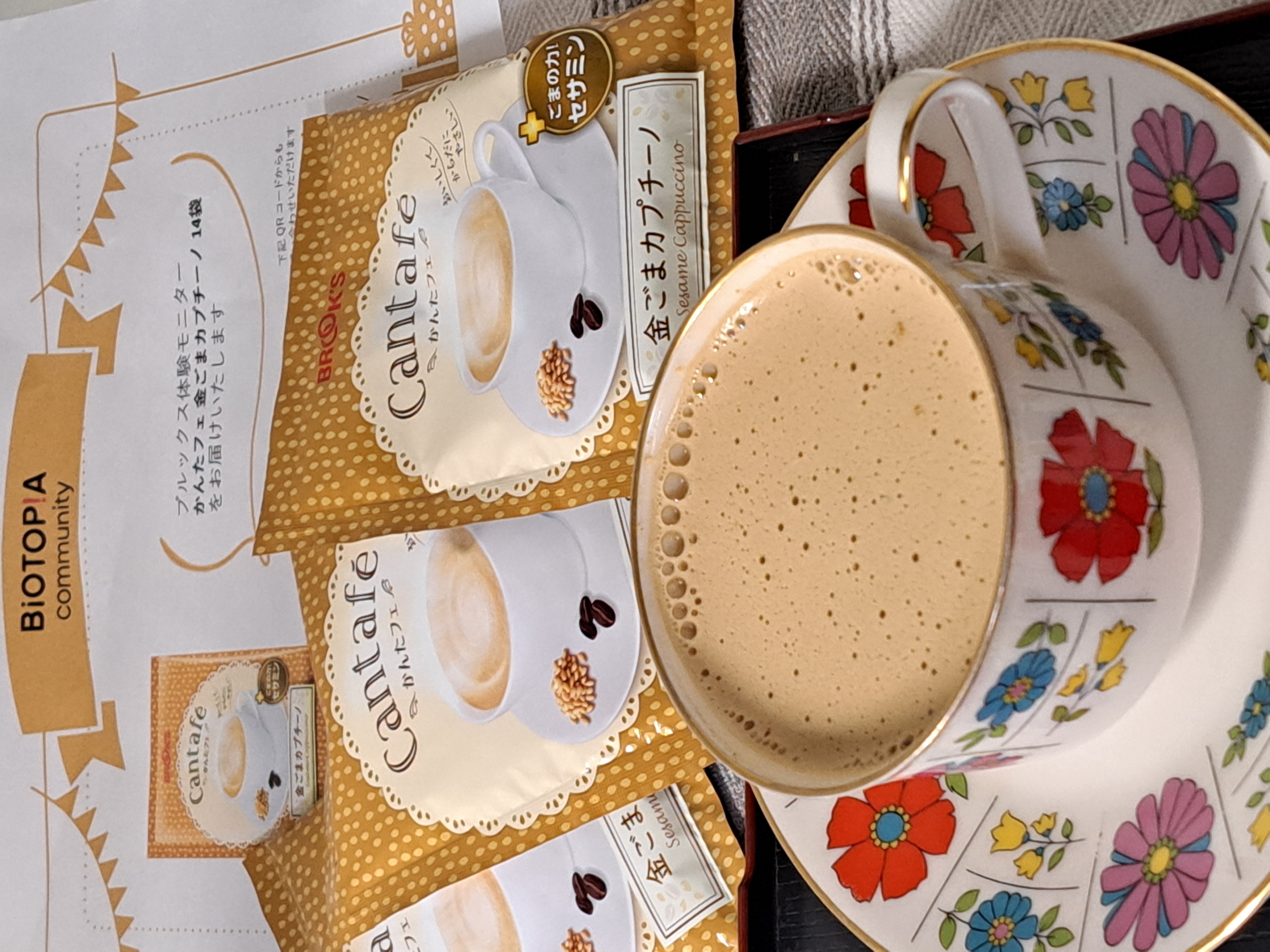 カプチーノは大好きで、冬に粉末タイプのカプチーノをよく飲みます。金ごまが入ることで、どんな風味になるのか楽しみです。